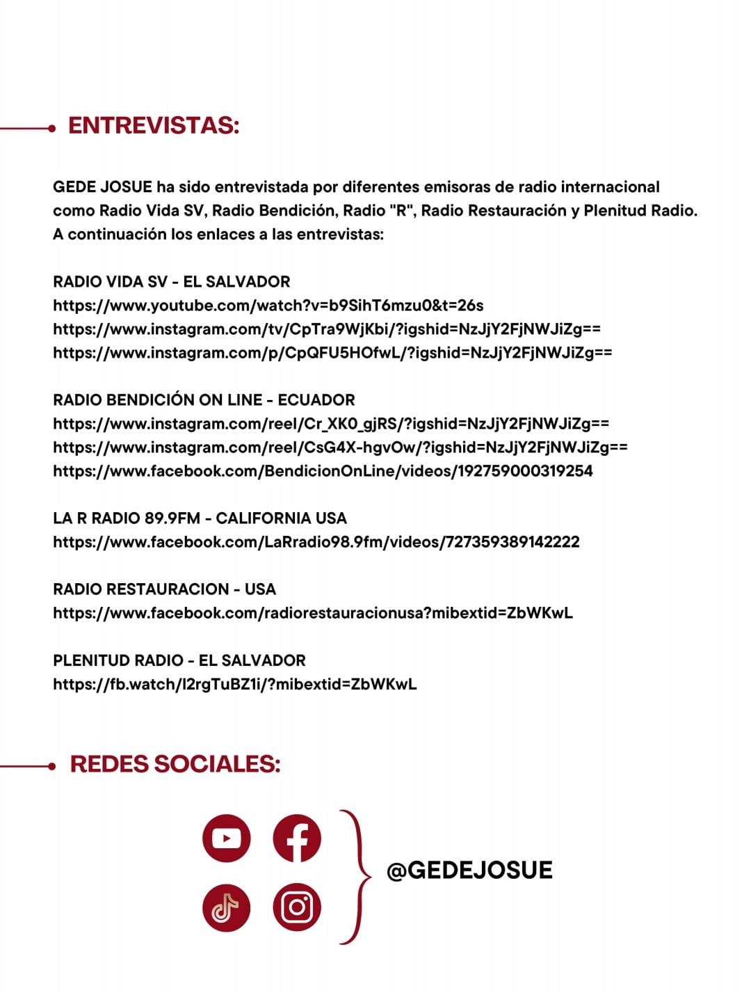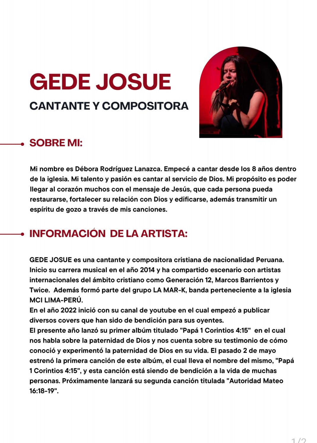 Llega hasta nuestra redacción el pres Kitt de GEDE JOSUE la cantante y compositora Peruana que brilla con sus canciones ya en Latinoamérica, la cantante Peruana viene presentando sus temas y Video Clips y es el turno de Nosotros de dejarte toda la información.